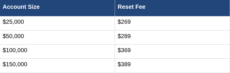 ACCOUNT RESET FEES